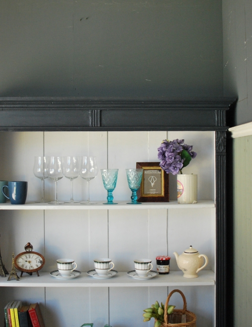 キャビネットもペイント。中は白いので、何を入れても映えます。