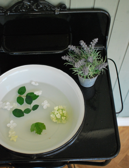 ウォッシュスタンドには、春らしくお花を浮かべてみました。