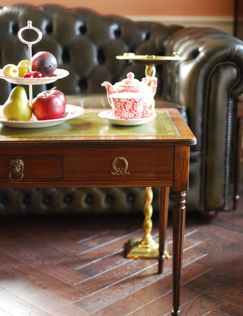 メインはチェスターフィールドのソファ。前には真鍮の灰皿。横には・・・