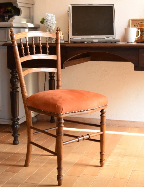 デスクの挿し色にはナポレオンチェア。座面のオレンジで元気に。