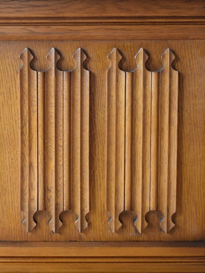 チューダー様式の家具の特徴は、浅浮き彫り。扉面にたっぷり彫りが入った家具を1つ置くだけで、お部屋の中は重厚な英国伝統の雰囲気に包み込まれます。