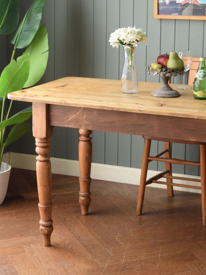 2年前にご購入頂いたアンティークのオールドパインのダイニングテーブル。お客様から天板が割れたとのご連絡を頂きました。