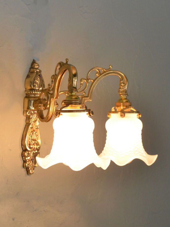 電球が上を向いている壁付けブラケットは、本来、2本がセットになっていて、シンメトリーに置くのが基本。