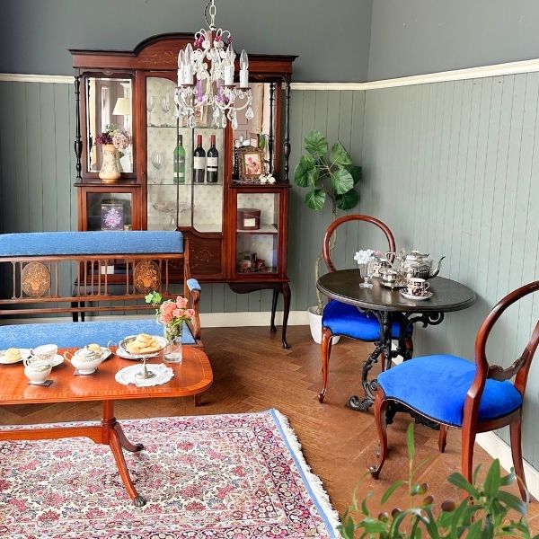 なんだか・・・風邪をひきました。朝晩すごく寒くなってきたので風邪をひくのも仕方ないな・・・と思いながら、あったかい紅茶を優雅に飲む場所をイメージしてスタイリングしてみました。