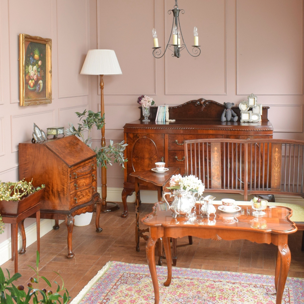 まるで絵じゃないかな?と思っちゃうくらい眺めているだけでうっとりする高級感漂うドレッシングチェストと丸いコーヒーテーブルを中心に、ナーシングチェアを両脇に。