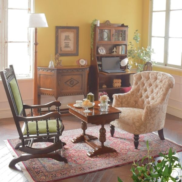 遠足に出かけた末っ子のお弁当を作り終わって、仕事までの時間を過ごすチェスターフィールドを使ったリビングをコーディネートしてみました。