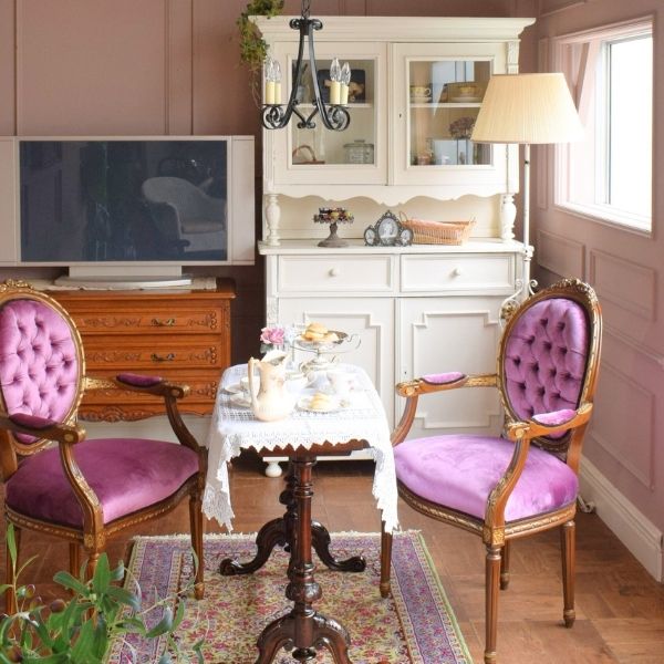 やっぱりフランスの家具は並べただけでめちゃくちゃ華やか☆カップボードの色をちょっと濃いめのもので合わせたので、逆にメリハリが出てイイ感じに仕上がりました。