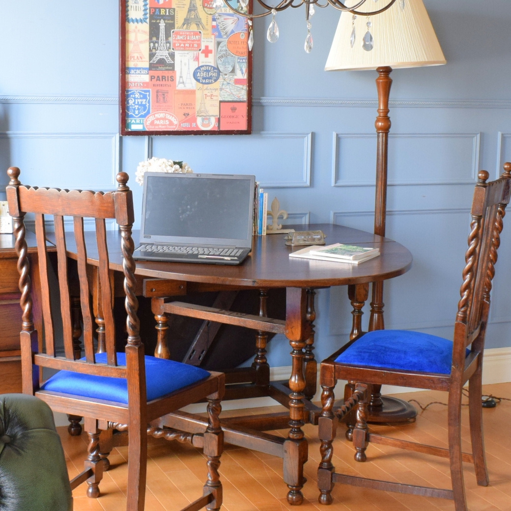 英国アンティークのダイニングチェア、ツイスト足がおしゃれなオーク材の椅子