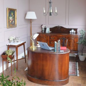 キドニー型のおしゃれなアンティークの書斎机、イギリスから届いた美しいプレジデントデスク