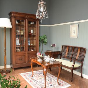 パッと目に飛び込んできためずらしいゲートレッグが気になって、この子を中心に家具を集めて作ったリビング。