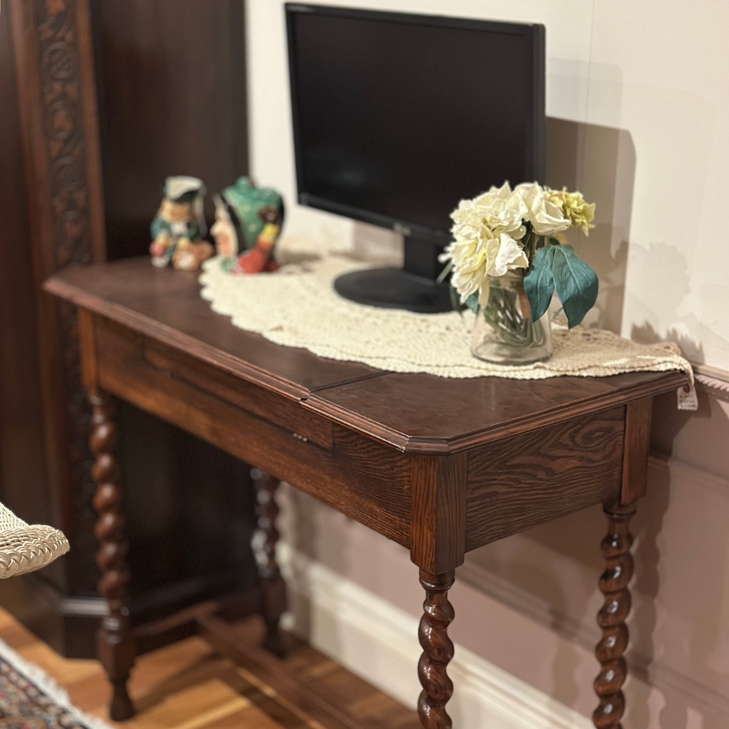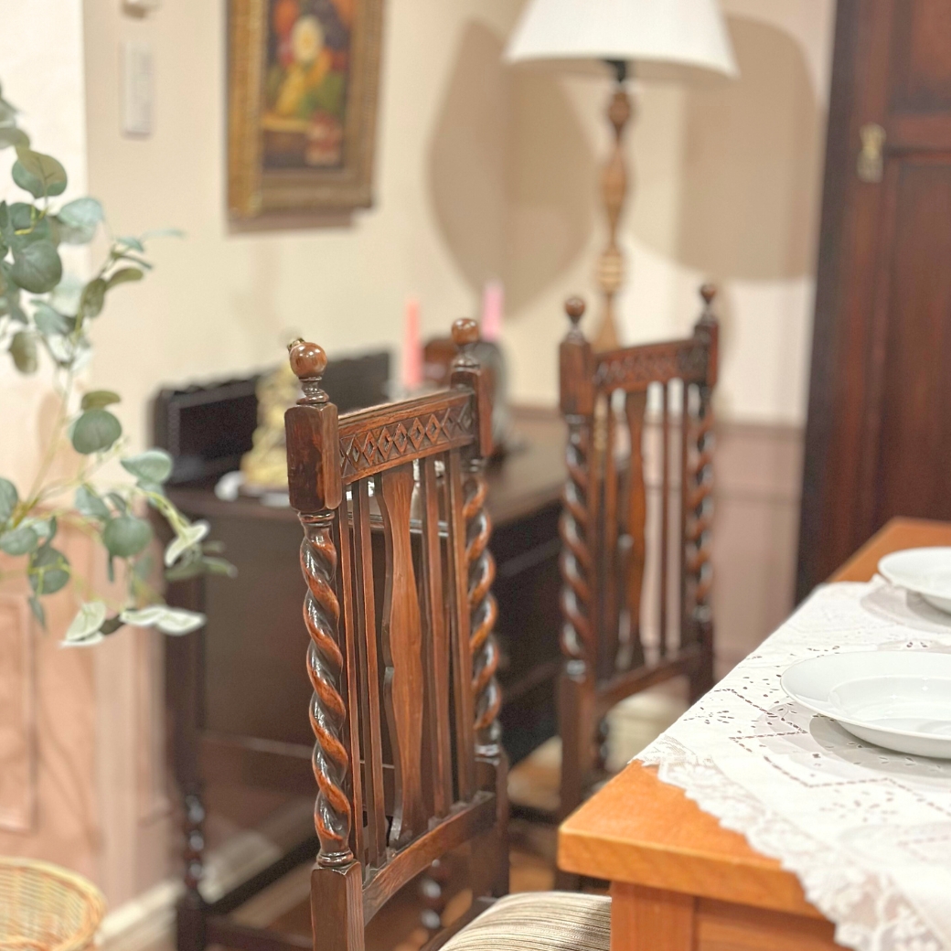 ツイスト足がおしゃれなアンティークの椅子、オーク材の美しいダイニングチェア