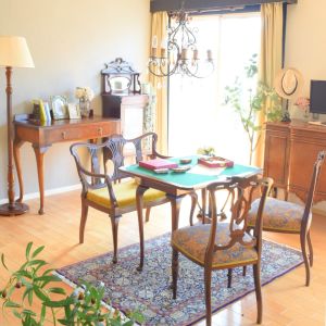 英国から届いた美しいアンティークの椅子、ウォールナットの高級感漂うサロンチェア