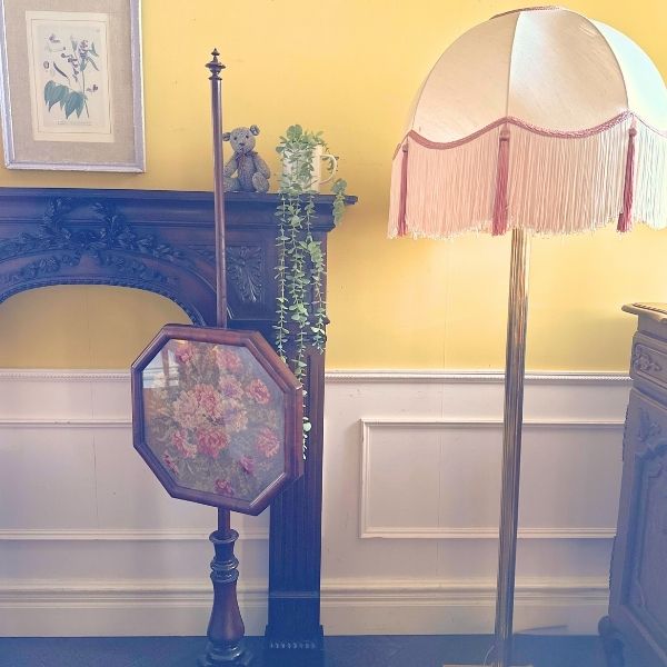 イギリスで見つけたおしゃれなフロアランプ、丸いシェードが可愛いアンティークの照明(B22シャンデリア球付)