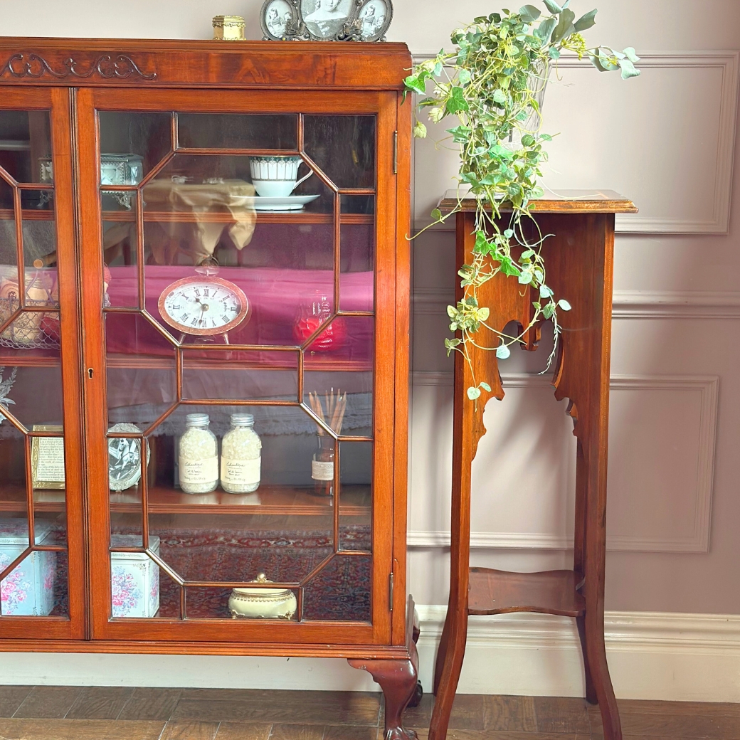 アールデコスタイルの美しいアンティーク家具、マホガニー材のおしゃれなプランツスタンド