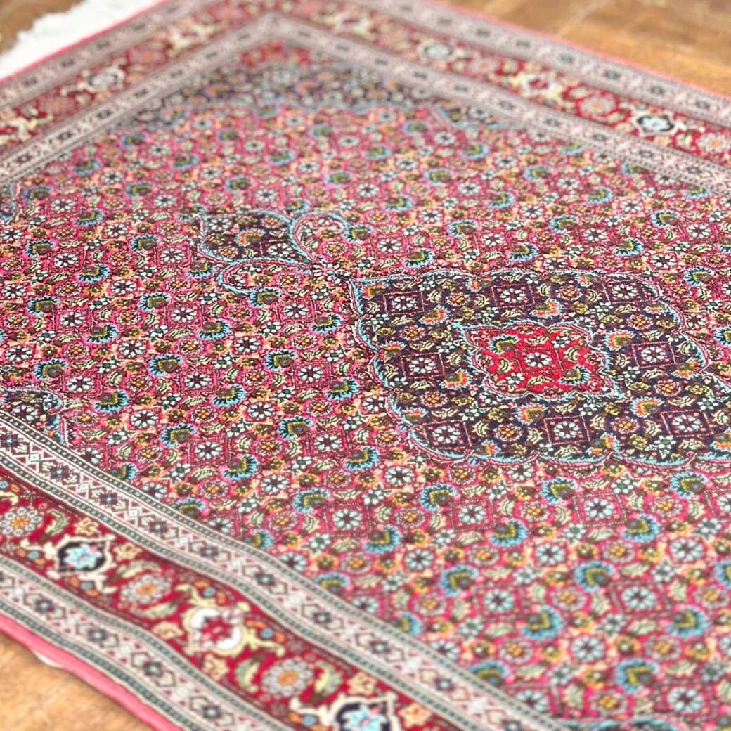 天然染料で染色されたタブリーズのペルシャ絨毯、鮮やかなピンク色が美しいマヒ柄のカーペット