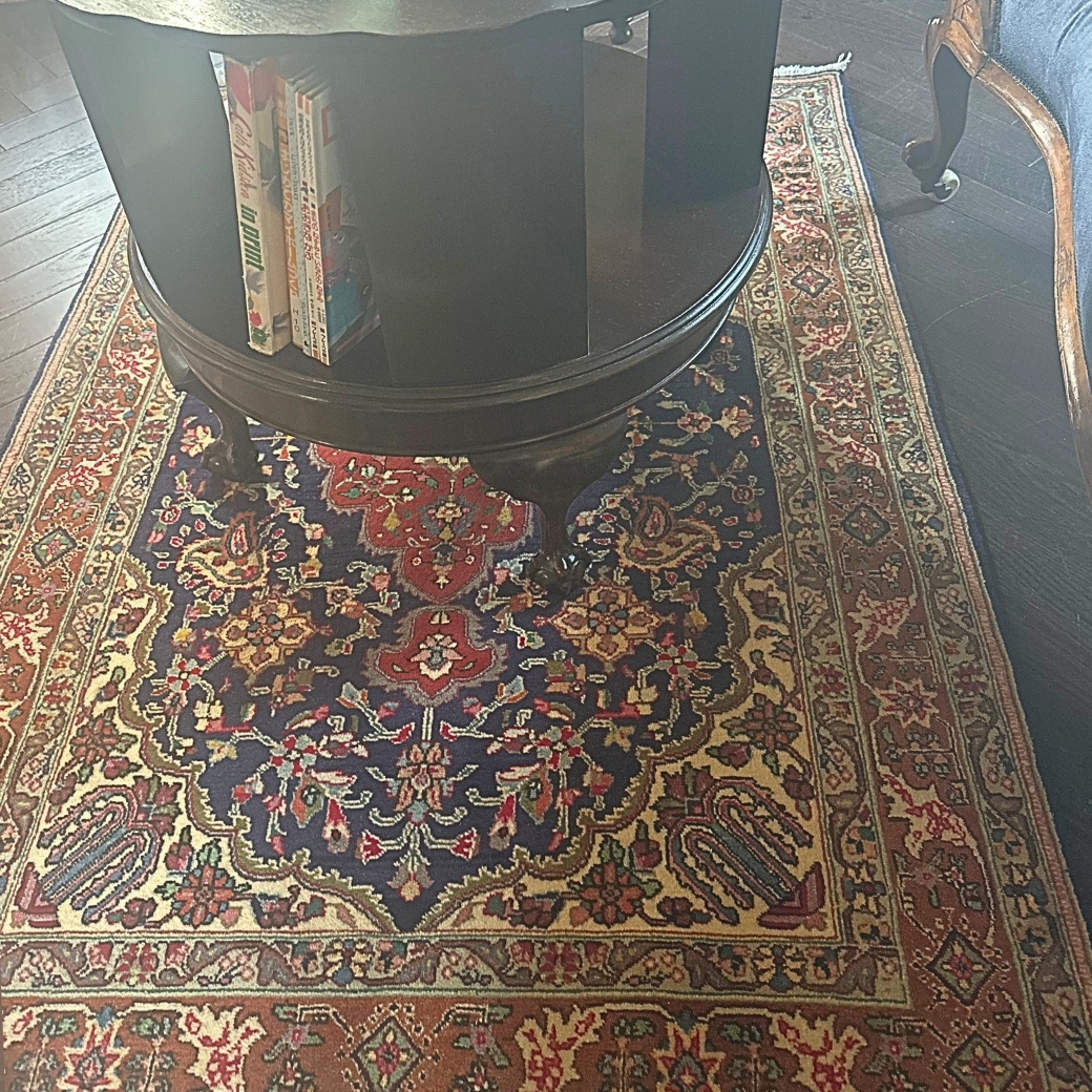 使いやすいサイズが魅力のペルシャ絨毯、タブリーズのビンテージカーペット (m-9543-z)