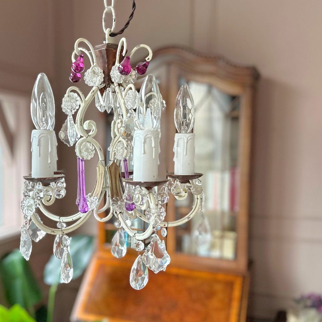 イギリスで見つけたアンティーク真鍮製シャンデリア(3灯)(E17シャンデリア球付) (k-5426-z)