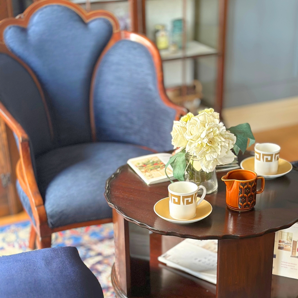 おやゆび姫気分が楽しめるアンティークの椅子、カブリオールレッグのパーソナルチェア