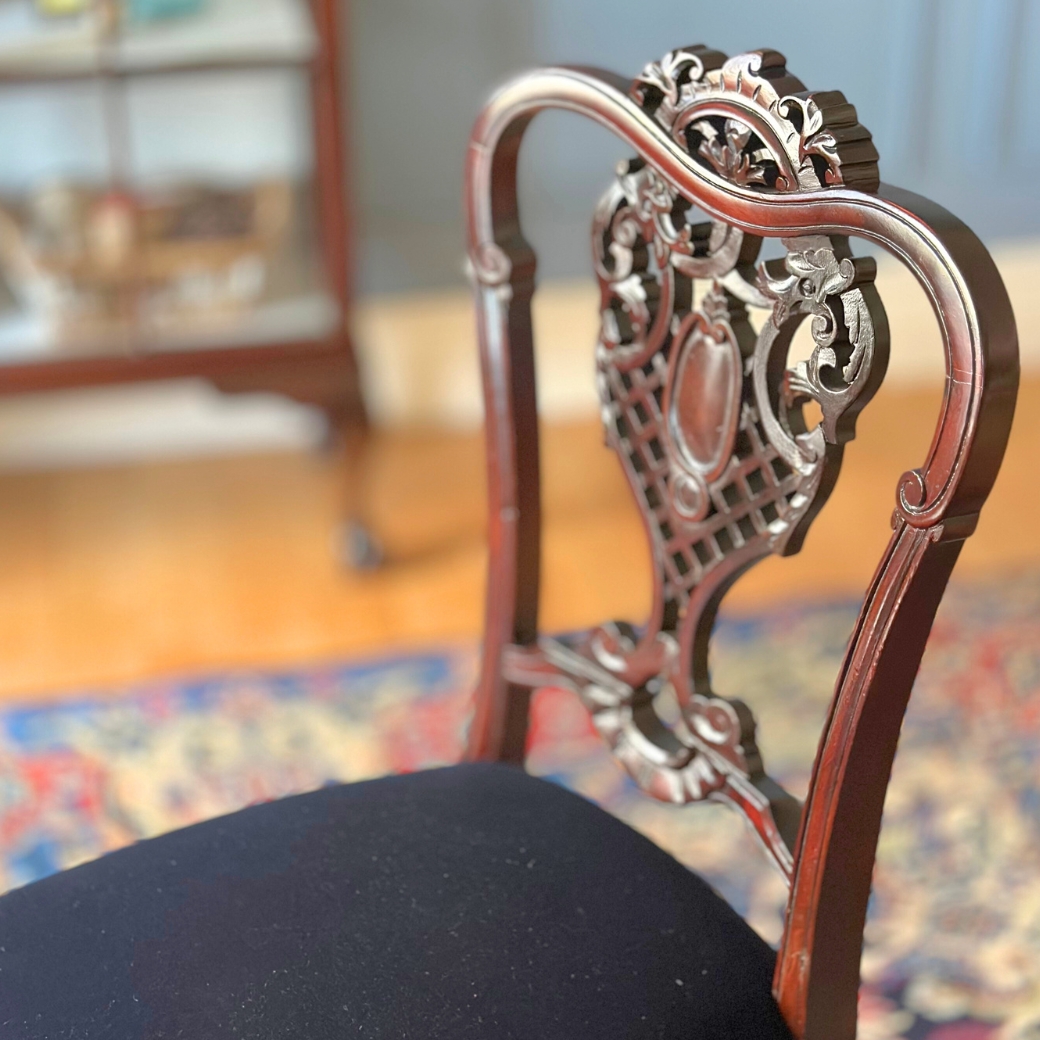 背もたれの透かし彫りが美しいヴィクトリアンの椅子、英国アンティークの美しいサロンチェア