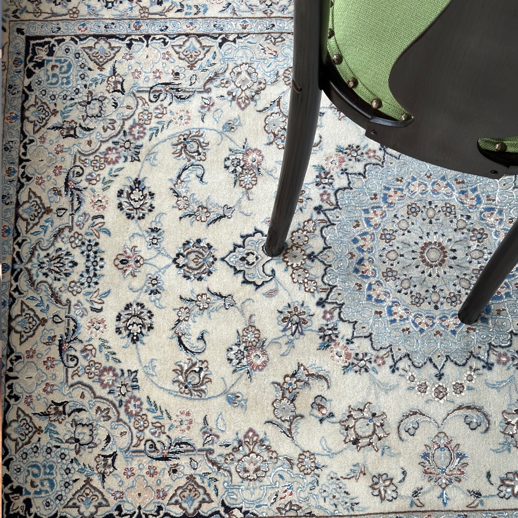 ナイーン(Naeen)の白い最高級ペルシャ絨毯、アラベスク模様が美しい 6Laの白ナイン