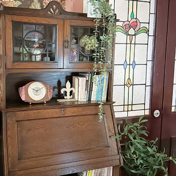 イギリスから届いたオシャレな本棚付きのデスク、アンティークのスチューデントビューロー