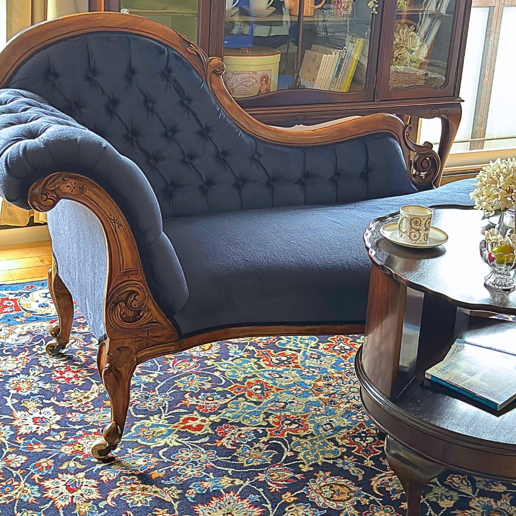 イギリスから届いたワンショルダーのセティ、ボタンダウンが美しいアンティークの長椅子