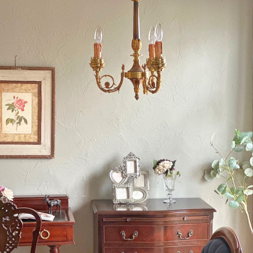 イギリスで出会った真鍮アンティークシャンデリア(3灯)(E17シャンデリア球付)