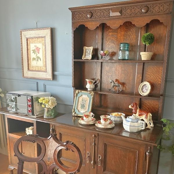 バルボスレッグのおしゃれなウェルシュドレッサー、英国アンティークのオーク材のオープンキャビネット