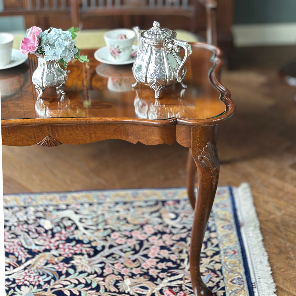 英国輸入のアンティークのコーヒーテーブル、マホガニー材の杢目が美しいローテーブル