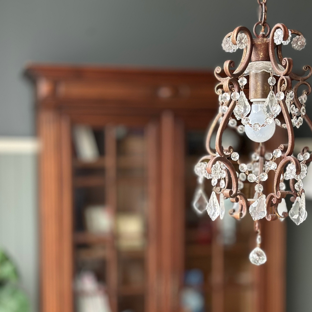 フランスで見つけたおしゃれな照明、アンティークのシャンデリア(E17シャンデリア球付) (x-1055-z)