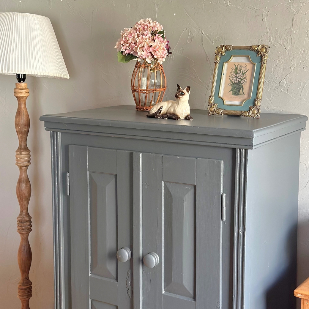 使いやすいサイズが魅力のおしゃれな色のアンティーク家具、イギリスから届いたシャビーシックなキャビネット