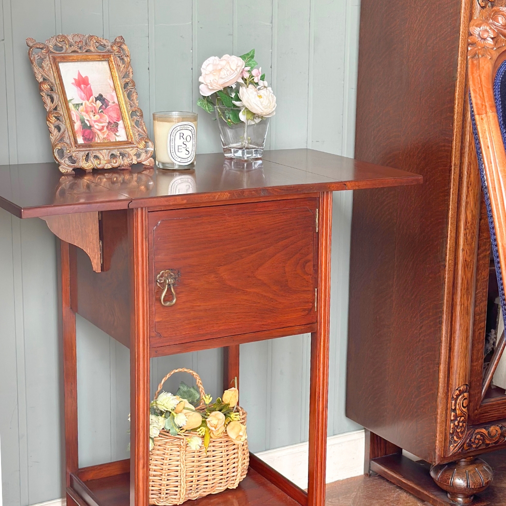 英国アンティークの美しいサイドキャビネット、伸長式天板のベッドサイドカップボード (q-3389-f)