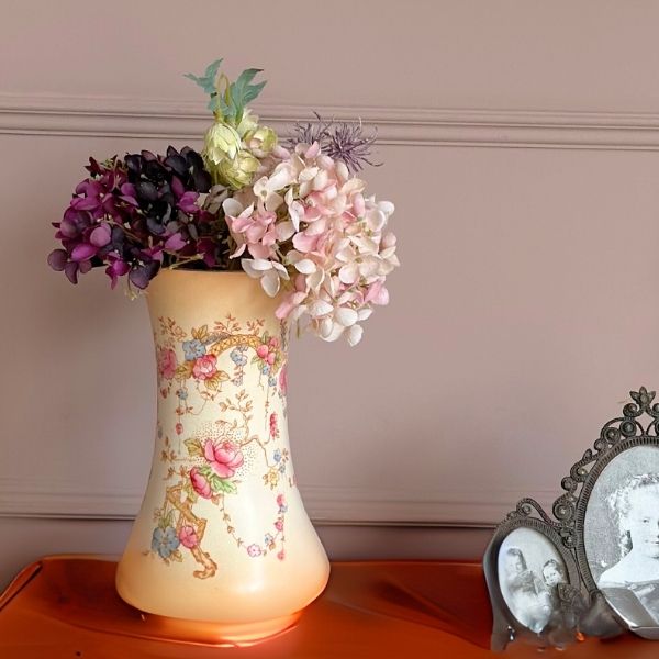 Crown Devon(クラウンデボン)のアンティーク、手描きで美しい絵が描かれた花器 (m-8119-z)