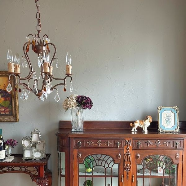ダイヤカットがキラキラ輝くアンティーク風シャンデリア(4灯・電球なし) (cr-514-g)