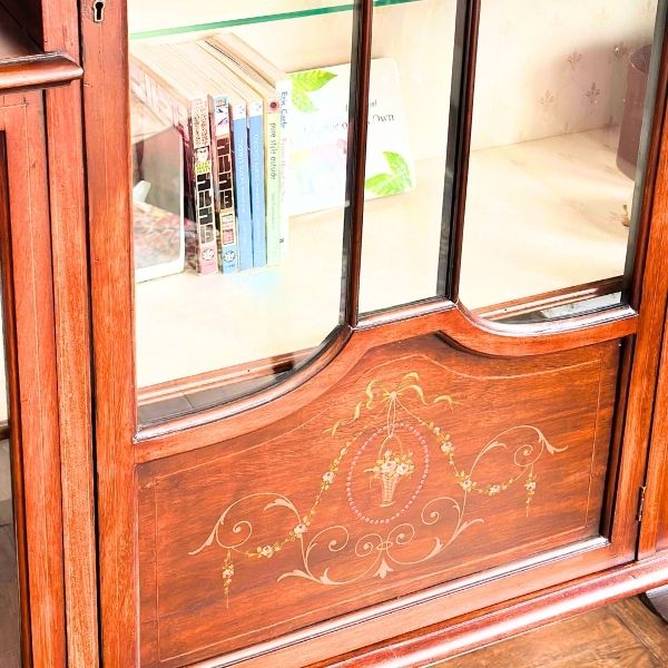 英国アンティークのパーラーキャビネット、アンゲリカ・カウフマン様式のマホガニーキャビネット