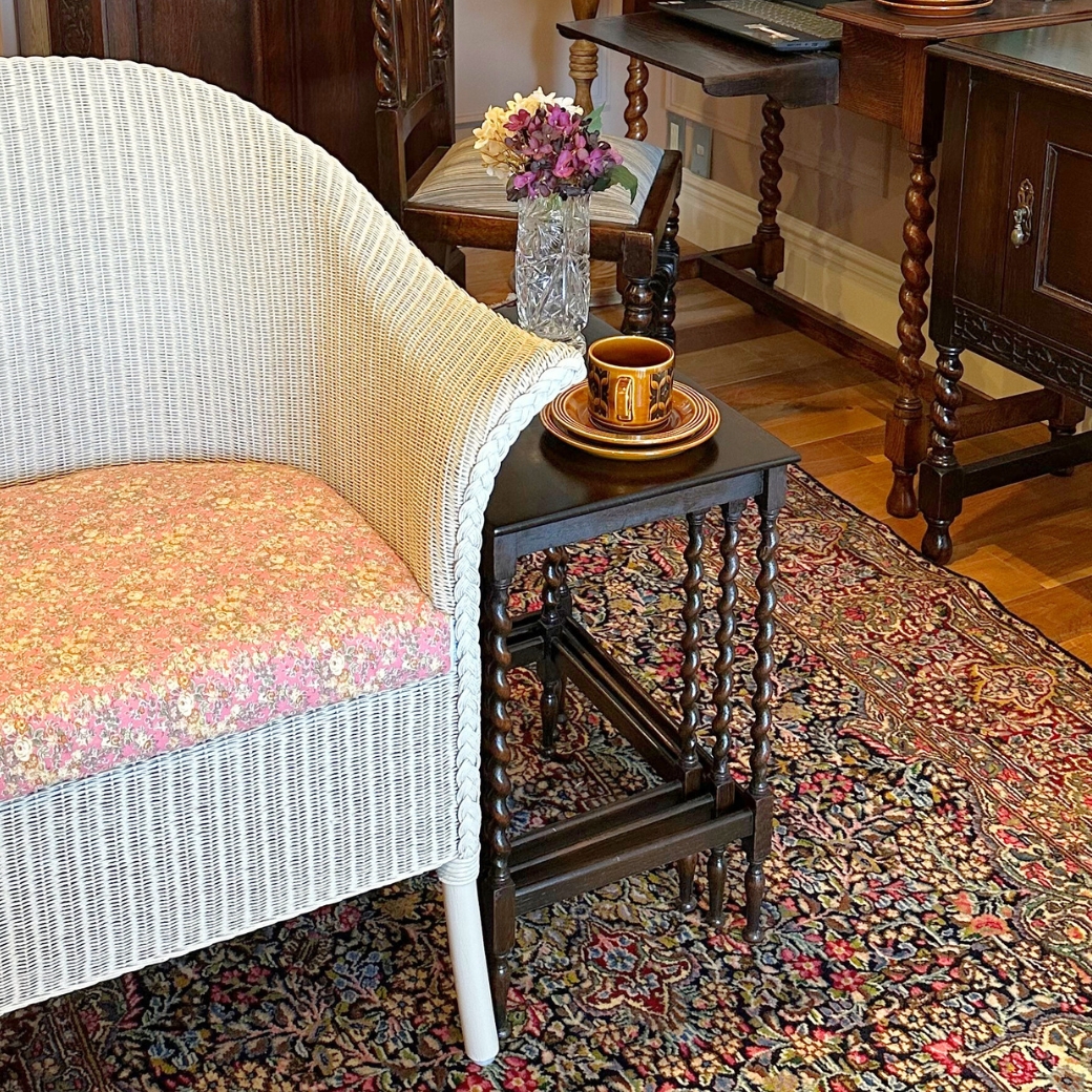 英国アンティークのおしゃれなテーブル、ツイスト足が美しい3台セットのネストテーブル
