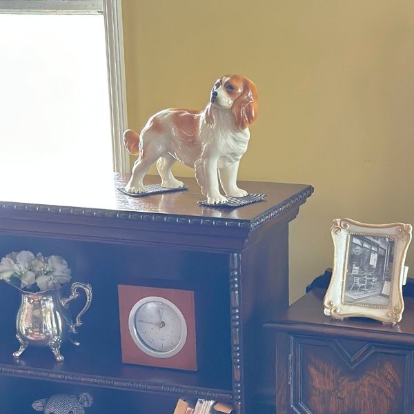イギリスから届いたアンティークのフィギュリン、表情が優しいスパニエル犬のビンテージ置き物