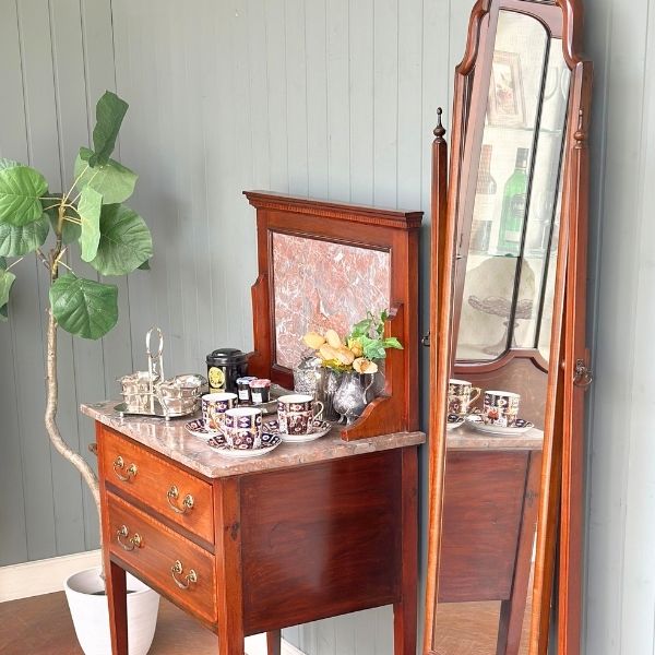 テーパードレッグの英国アンティーク家具、天然大理石が美しいウォッシュスタンド