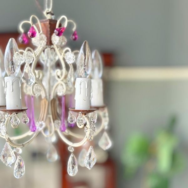 フランスから届いたアンティークの5灯シャンデリア、アンティークガラスの照明(E17シャンデリア球付) (k-5349-z)