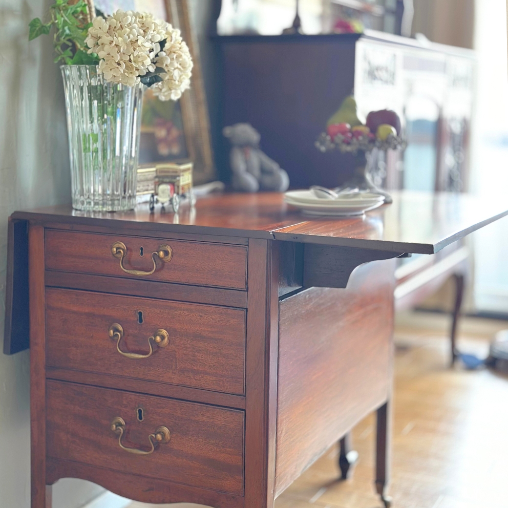 ダイアモンドチャイナのイマリのアンティークトリオがあまりにも素敵だったので、今日はいつもと違って、このトリオに合うお部屋を作ろう!とコーディネートを始めました。