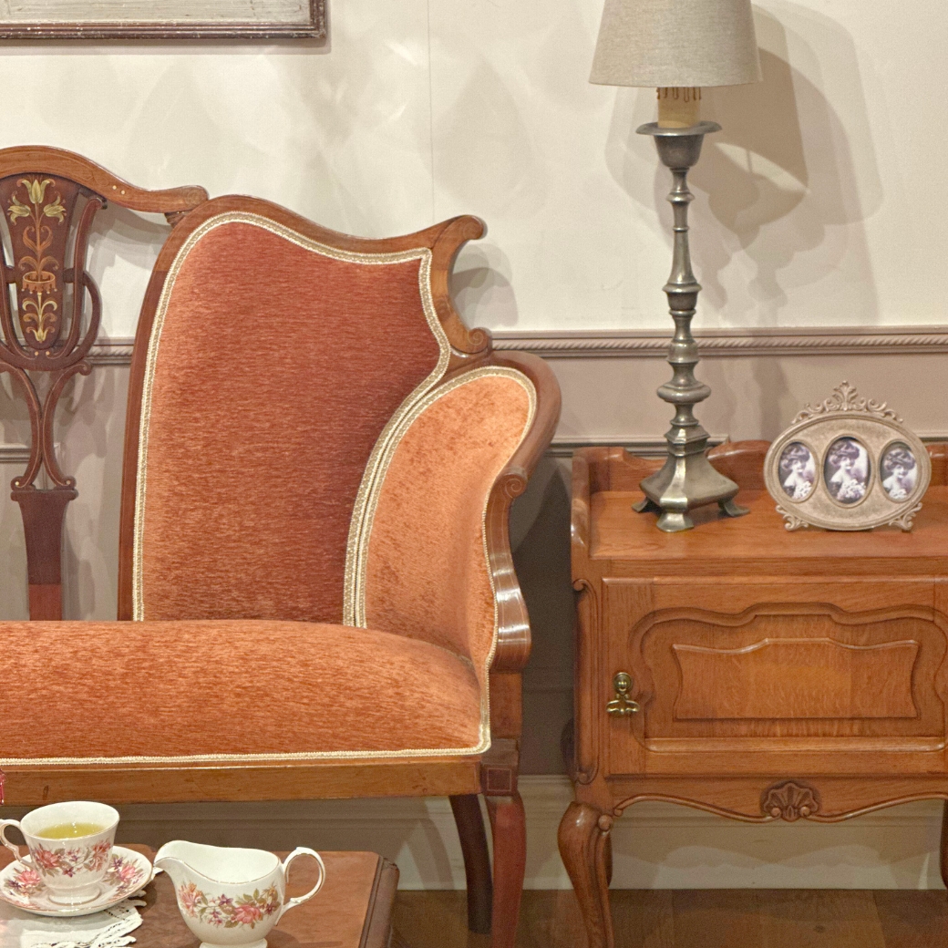 英国アンティークの美しいセティ、 象嵌細工が美しいマホガニーの長椅子