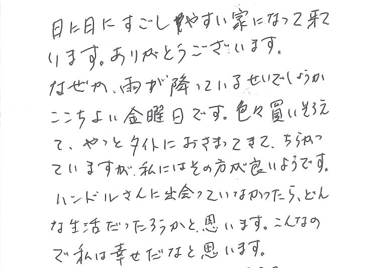 日に日にすごしやすい家になって来ています。ありがとうございます。