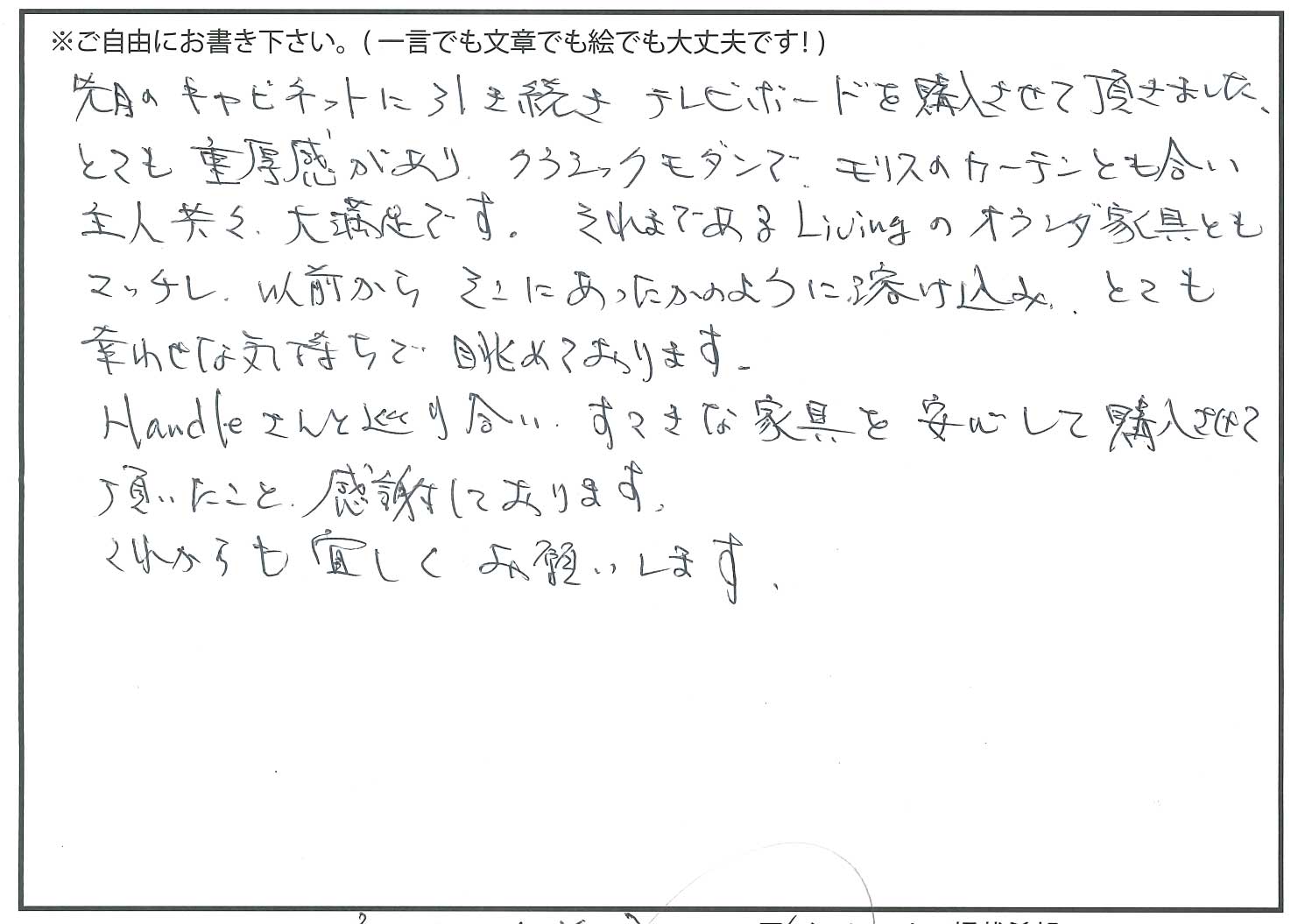 Handleさんと巡り合い、すてきな家具を安心して購入させて頂いたこと、感謝してあります。