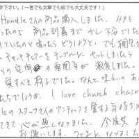 初めてHandleさんの商品購入しました。HPを見ての注文だったので、商品到着まで少し不安でした。イメージしていたのと違ったらどうしようと。でも梱包をといてでてきたチャーチチェアーをテーブルにセットしましたらその周りの空間の雰囲気が豹変しました。いい意味です。愛すべき椅子でした。