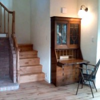 この度は大変お世話になりました。新築の家の玄関ホールにステンドグラスを埋め込みました。ガラスブロックと並べてみましたが、なかなか相性もよく可愛い雰囲気になりました。まさに我が家の顔となりました。ブックケースビューローは、ブラケット、階段、さらにその横の薪ストーブ、そのすべてと相性が良く、けれども存在感を主張しない、でもそこに確実に存在する。そんな家にマッチした家具でした。時を経ても、いいものはいい。主を変えても確実にその役割を果たしてくれると信じています。素敵なビューローをありがとうございました。またスタッフ方々の親切な対応に心より感謝申し上げます。今後ともよろしくお願い申し上げます。