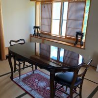 和室にはアンティーク風のテーブル更にバルーンバックチェアを置いてみました♪私の中でしっくりきて凄く心地が良いです。