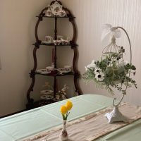 使っているアンティークのドローリーフテーブルとの色もあって、とても可愛い部屋になりました!