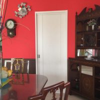 今年6月に、水周り全部と玄関、キッチンレンジ、壁クロス貼り変えました。予算内で合うもの好きなものにしました。 壁クロスは落ち着いたにブルーに決めていて一気にアンティークが引き立つようになり満足しています。 ホワイトのエレガントなマントルピースもクロスに映えて美しく収まって一安心しました?。 玄関の証明や、他使用してないのもありますが、またつけましたらお写真を載せます。玄関もスッキリ収納して、 ミラー付きで全身見えるのでスタイルを決められます?アンティーク ガラスキャビネットは 約100年前の物ですね、以前はどの様なお方が持ってらしたのかと、その時代を想像しますね??大きすぎずピッタリ合いました。 ほんとに美しいです?
