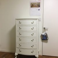 本日、白いチェストが無事届きました。スタッフさんたちの熱意が伝わってくるような完璧なお品でした。よくオーナーさまが一目惚れで買い付けてらっしゃる様子がブログとか説明に記されているのですが、もう届いた時から、大好きになってしまいました。家具をこんなに好きになったのは初めてです。中に入れるものもよく考えて、つい仕舞い込んで忘れてしまう私でも、頭に憶えもよく仕舞い易く便利なように整理したいと思います。先だって送って頂きましたGブランのチークの椅子4点もダイニングで大活躍しております。
