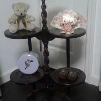 お返事、遅くなり申し訳ありません。福井の大雪は、いかがでしょうか?お見舞い申し上げます。アンティーク家具は初めてですが、ケーキスタンドに一目惚れし購入しました。 初めてなのに、シンプルでなく個性的な家具を買ってしまいまし...
